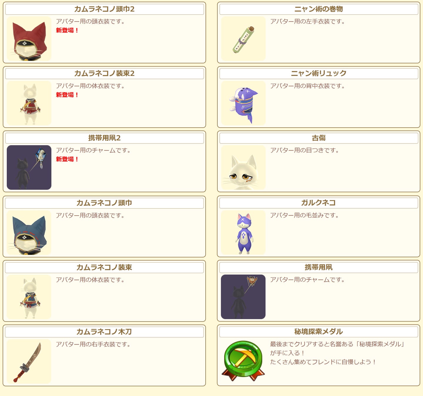 新たに追加された「カムラネコノ装束2」などを入手するチャンスです!