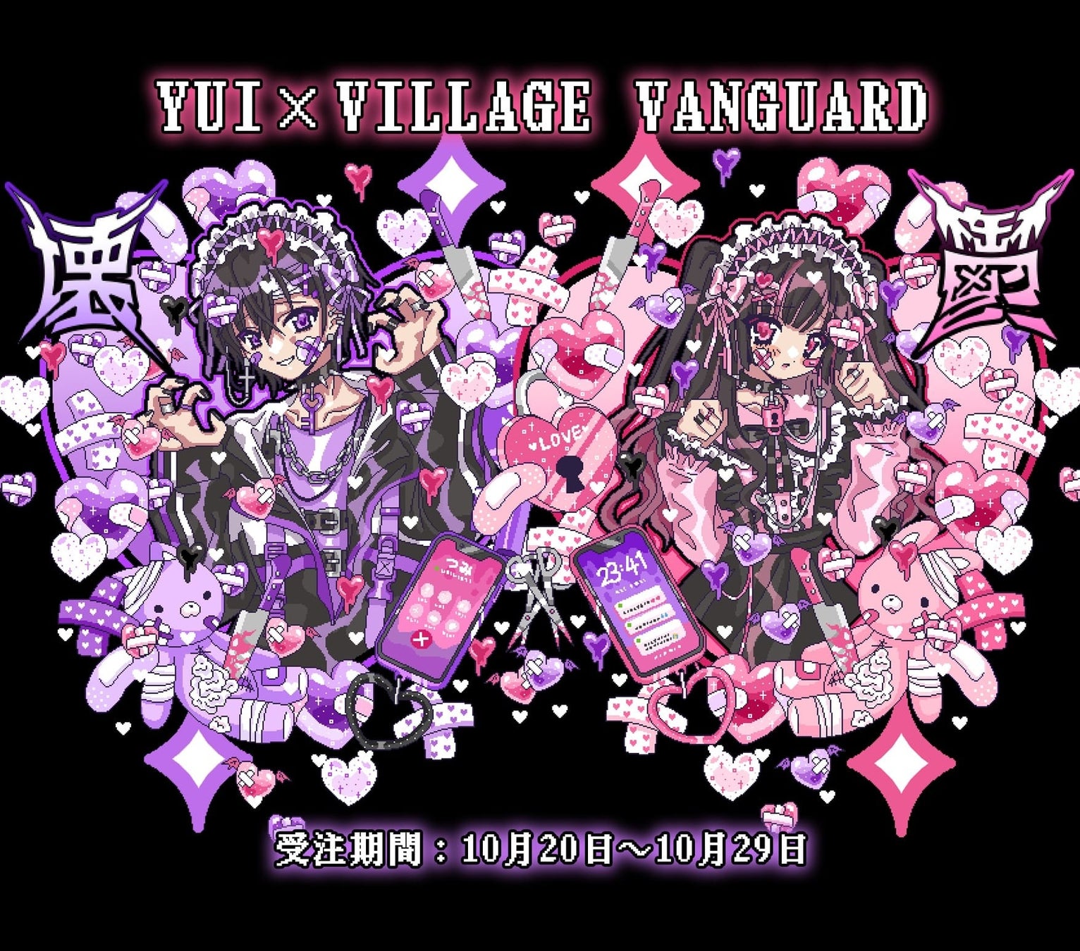 2023年10月20日(金)より、平成初期のアニメのようなタッチで、現代的なサブカルチャーを組み込んで描くイラストが可愛くてクセになる話題のイラストレーター【YUI】とヴィレッジ ヴァンガードのコラボグッズが発売開始!!!今回は地雷カップルの【壊くん】と【鬱ちゃん】の2人の収まりきらない感情をイラストで表現!!!