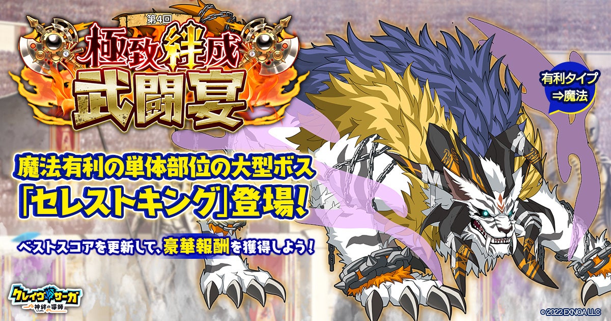 合同会社EXNOA(本社:東京都港区、CEO:村中 悠介、URL:https://games.dmm.com/)が運営するDMM GAMESにおいて本日10月22日(火)より、共感できる「推し」が見つかるRPG『クレイヴ・サーガ 神絆の導師』にて極致絆成武闘宴が開催されたことをお知らせいたします。