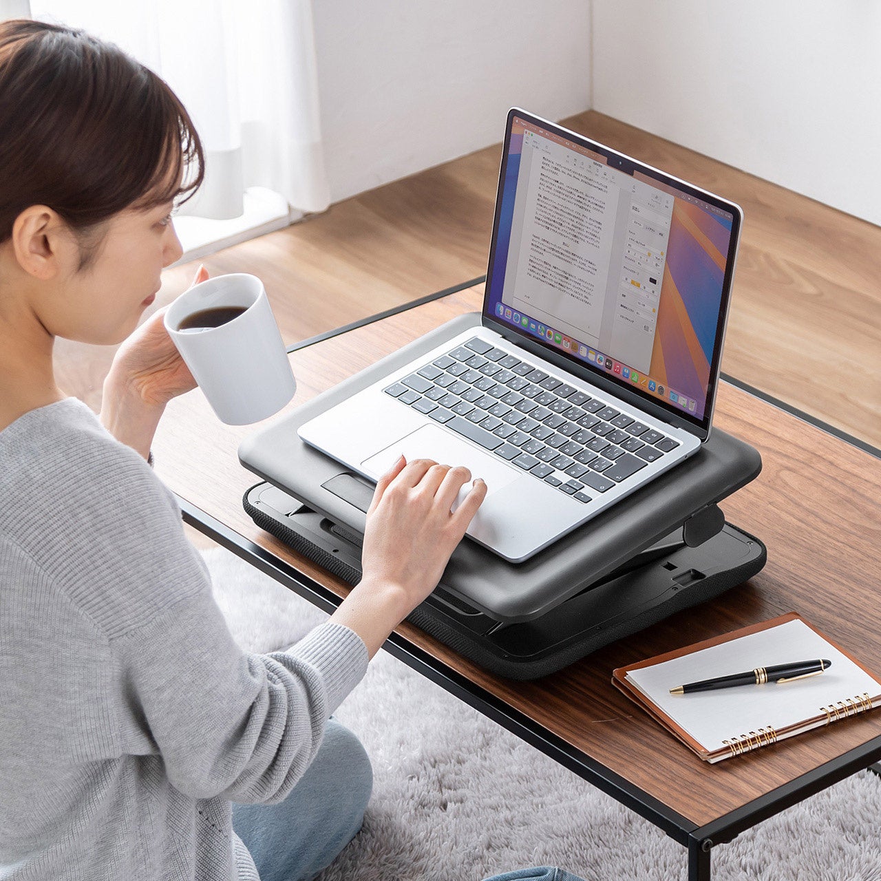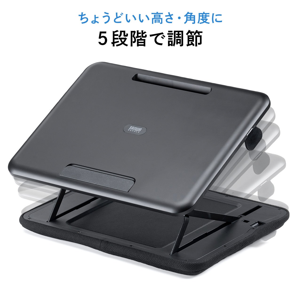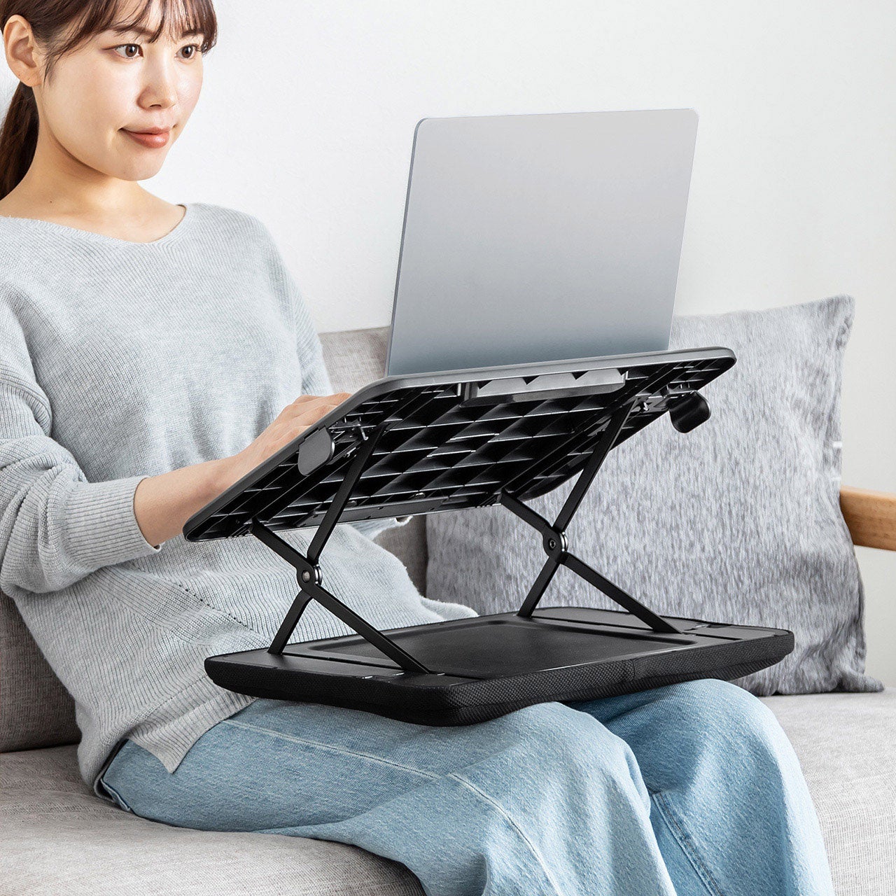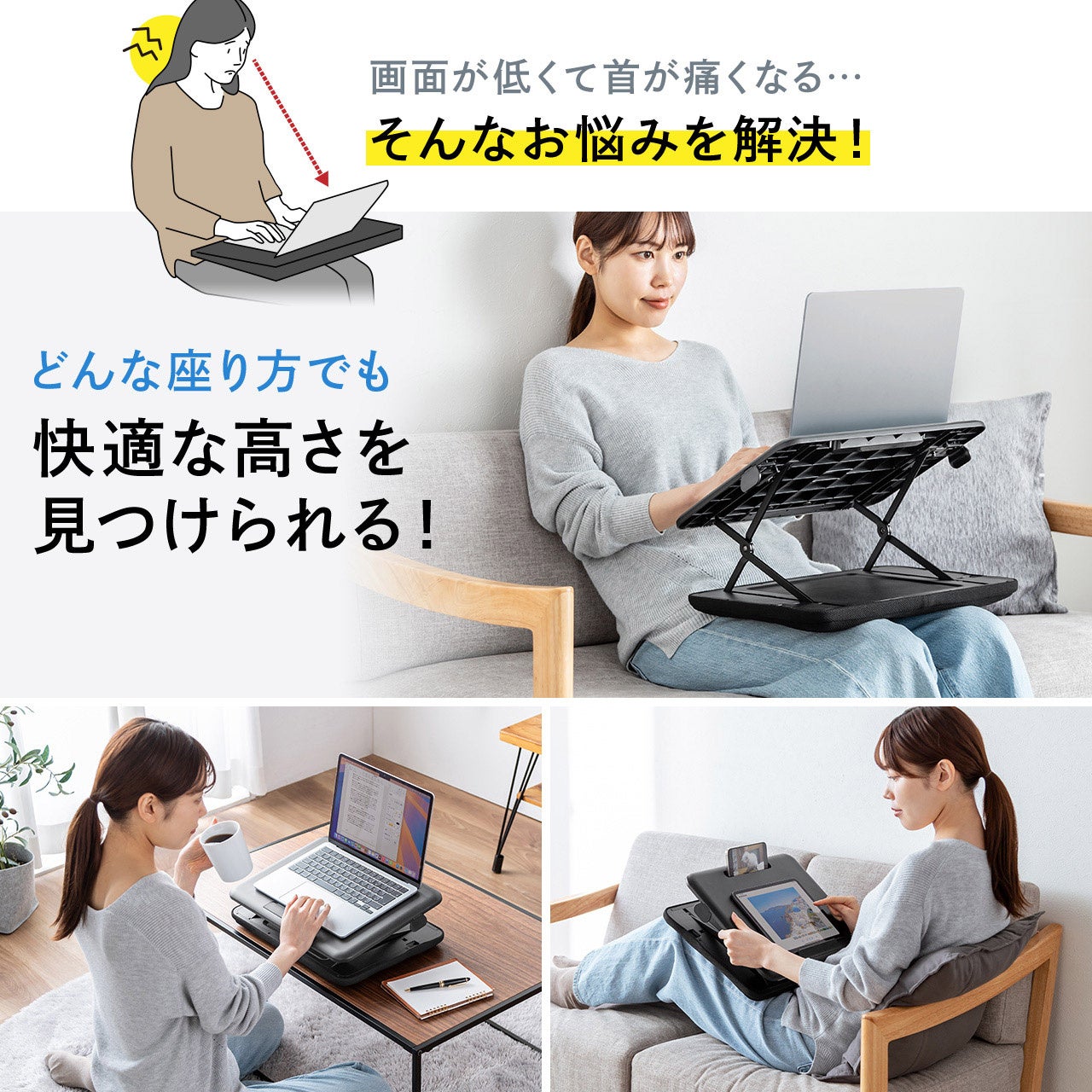 クッションテーブル パソコンスタンド 膝上テーブル タブレットスタンド 上下昇降 高さ変更可能 マウスパッド付 メッシュクッション 200-HUS019BK
