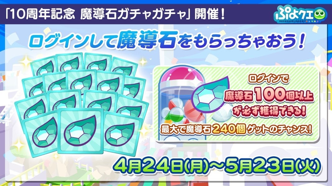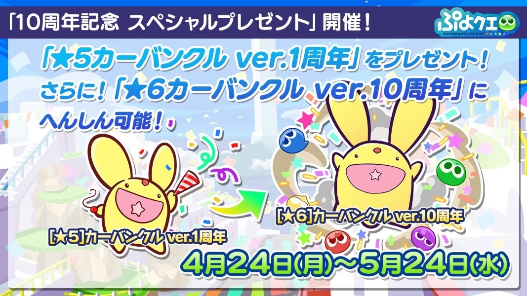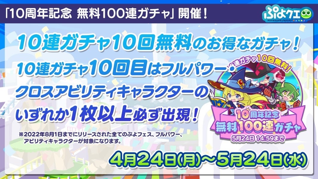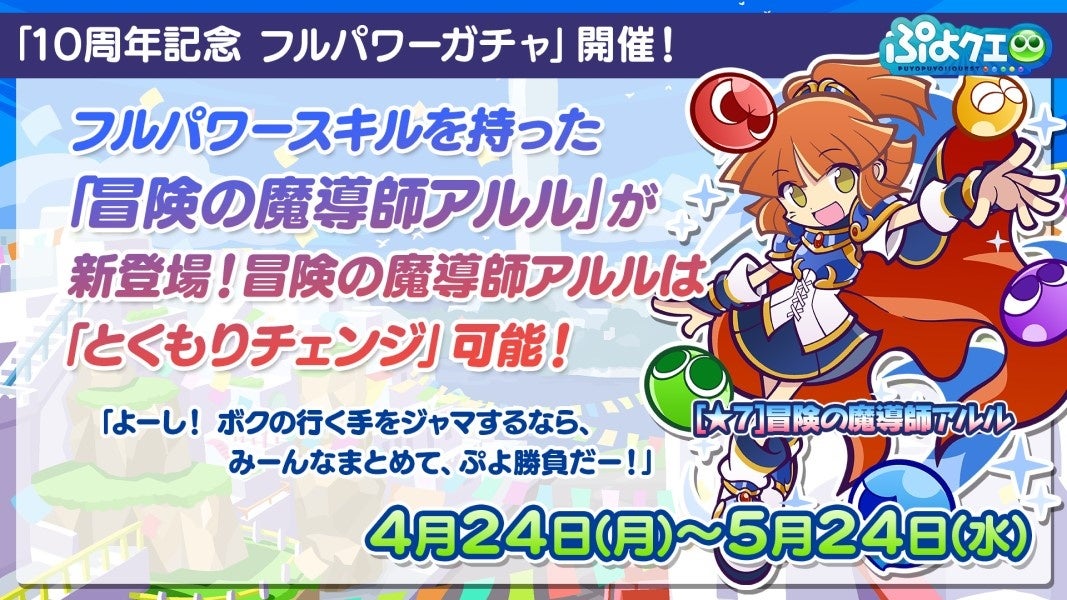 『ぷよぷよ!!クエスト』本日4月24日で10周年!「ぷよクエ10周年記念キャンペーン」を本日より開催!「冒険の魔導師アルル」が新登場する「10周年記念フルパワーガチャ」開催!