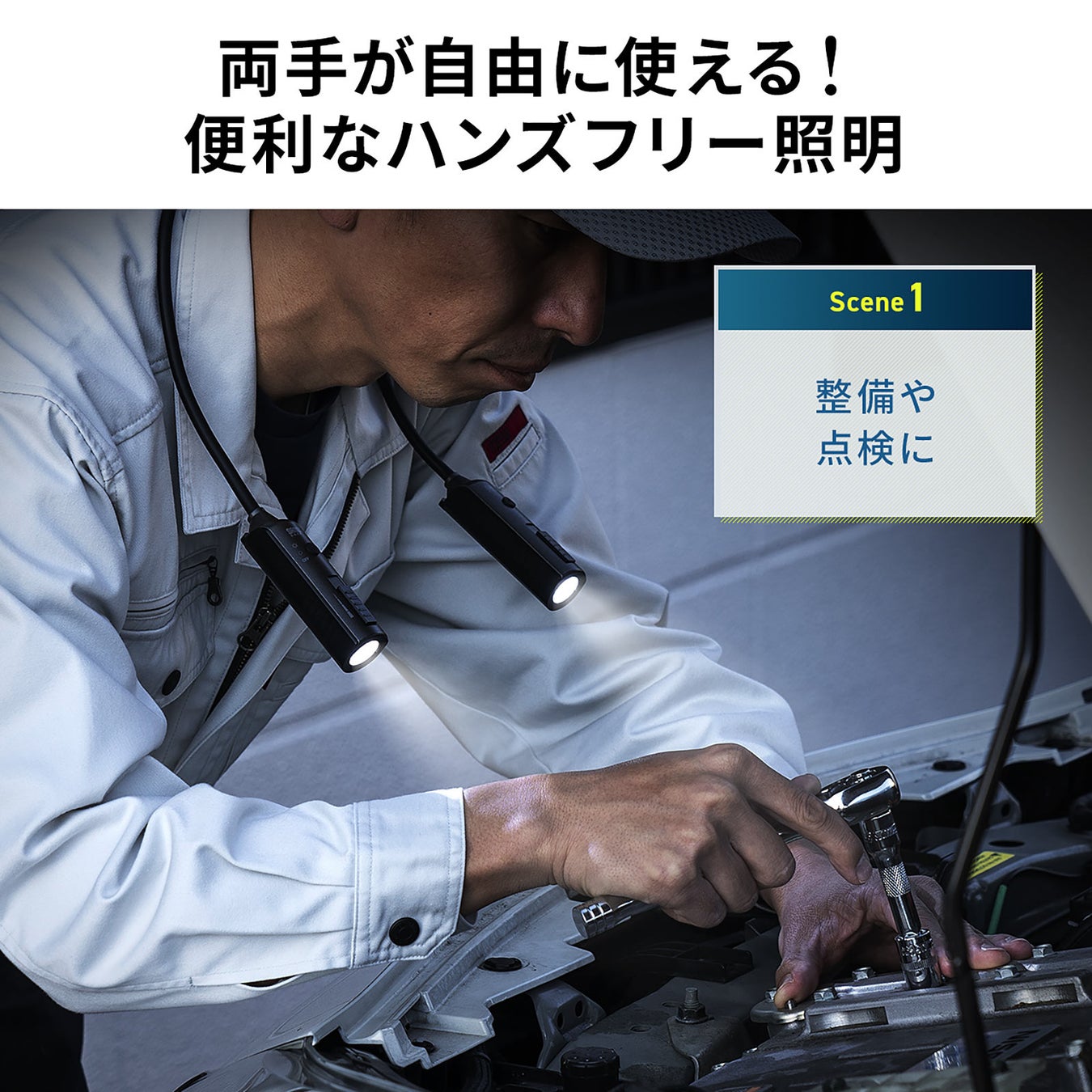 ハンズフリーで使えるUSB充電式のLEDネックライト。