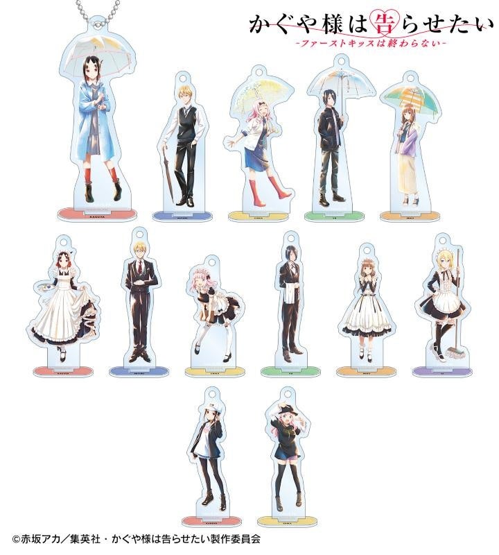 四宮かぐや、白銀御行、藤原千花、石上 優、伊井野ミコ、早坂 愛の描き下ろしイラストを新たなタッチで魅力的に表現し、アクリルスタンドキーホルダーに仕上げました。