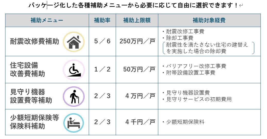 耐震改修補助等をパッケージ化した各種補助メニューで登録を支援します!