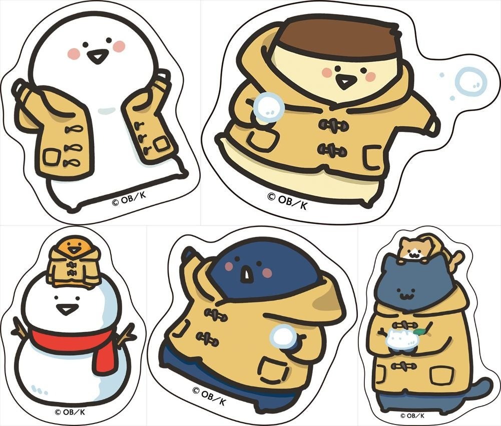 ステッカー 冬のぬくぬくおでかけ(お文具さん/プリンさん/名も無き者/猫さん/ゼリーさん) 価格:各330円(税込)