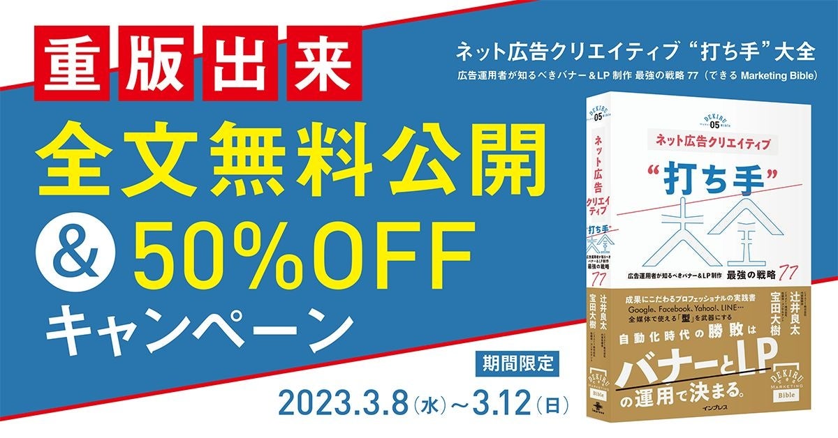 『ネット広告クリエイティブ“打ち手”大全』の重版を記念して、5日間限定で全文無料公開! 電子書籍の50%オフキャンペーンも実施