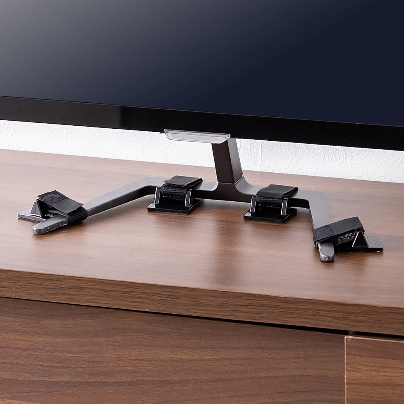 最大65インチまでのテレビに対応しており、ベルト長の調節が可能なため、様々なテレビの脚の形に取り付けできます。