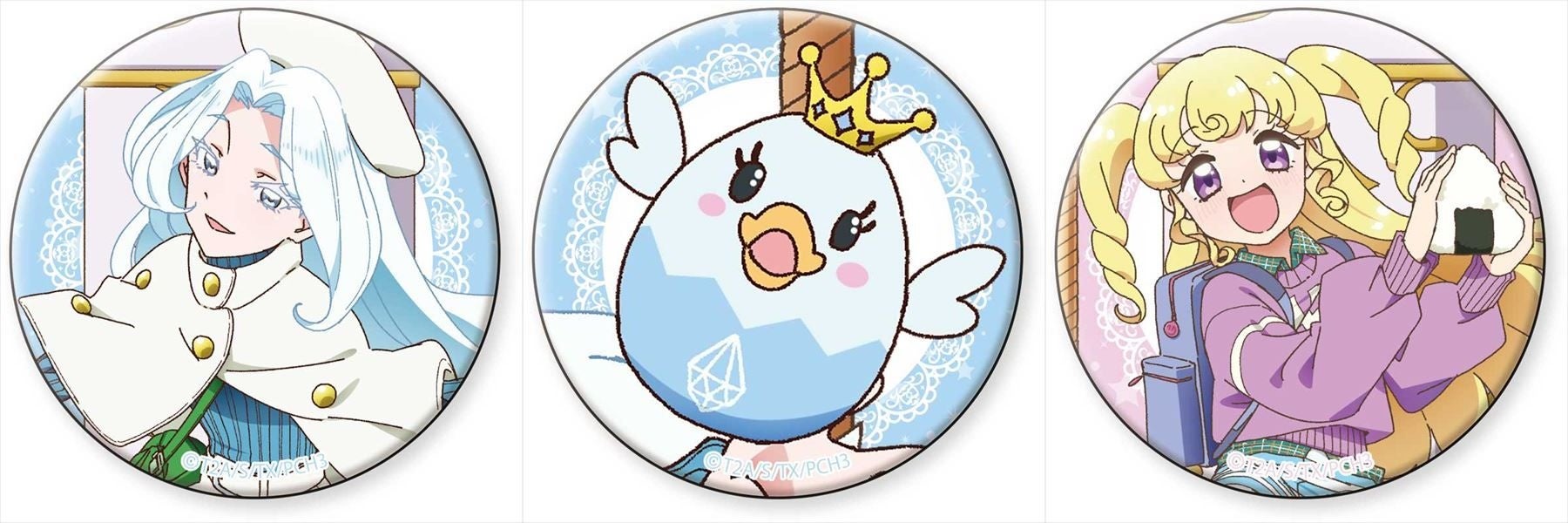 キラッとプリ☆チャン5周年202311 缶バッジ(アンジュ/ハクッCHO/ゆい) 各715円(税込)