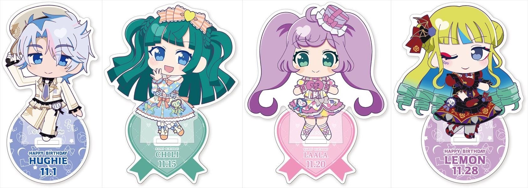 ハピプリバースデー202311 アクリルスタンド(ひゅーい/ちり/らぁら/れもん) 各1,980円(税込)