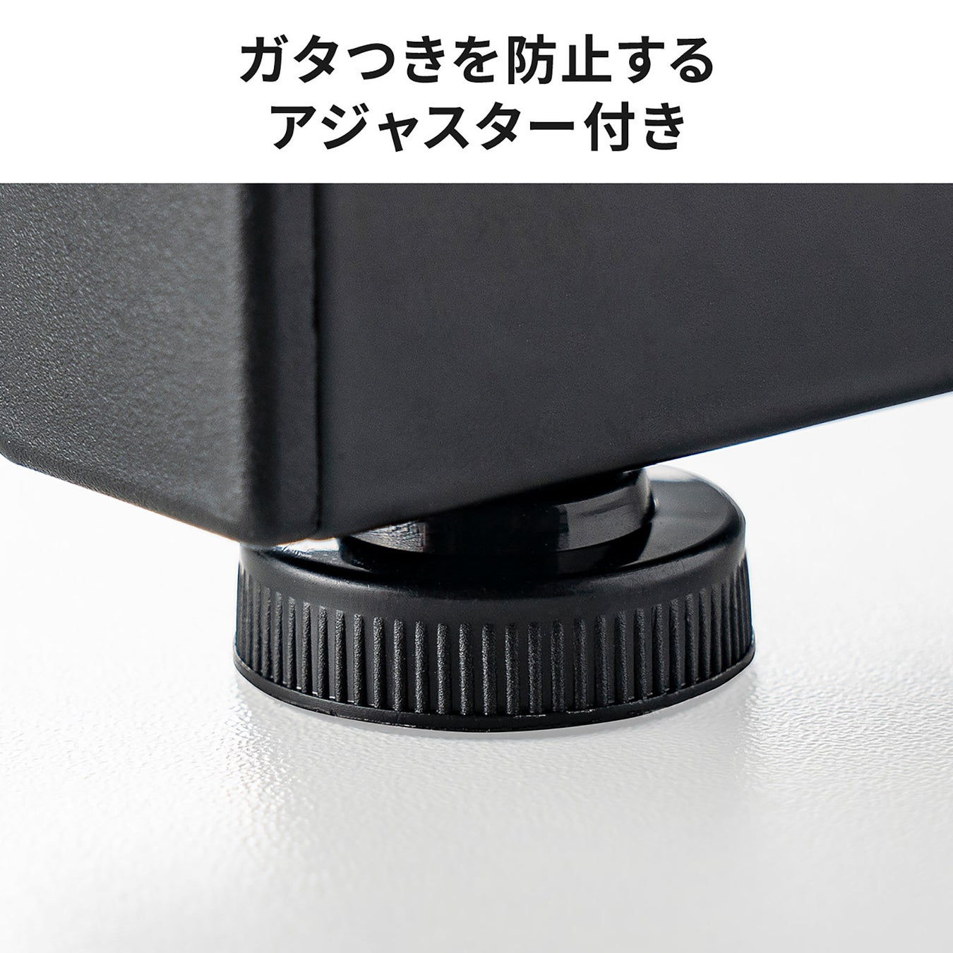 ガタつきを防止するアジャスター付きで安定して使うことができます。さらに、メラミン化粧板を採用しているので強度がありお手入れも簡単にご利用いただけます。