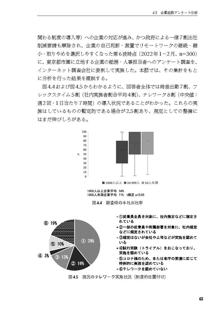 ・コロナ禍を経ての、企業や人々の働き方に対する変化を多様な表やグラフで説明しています。