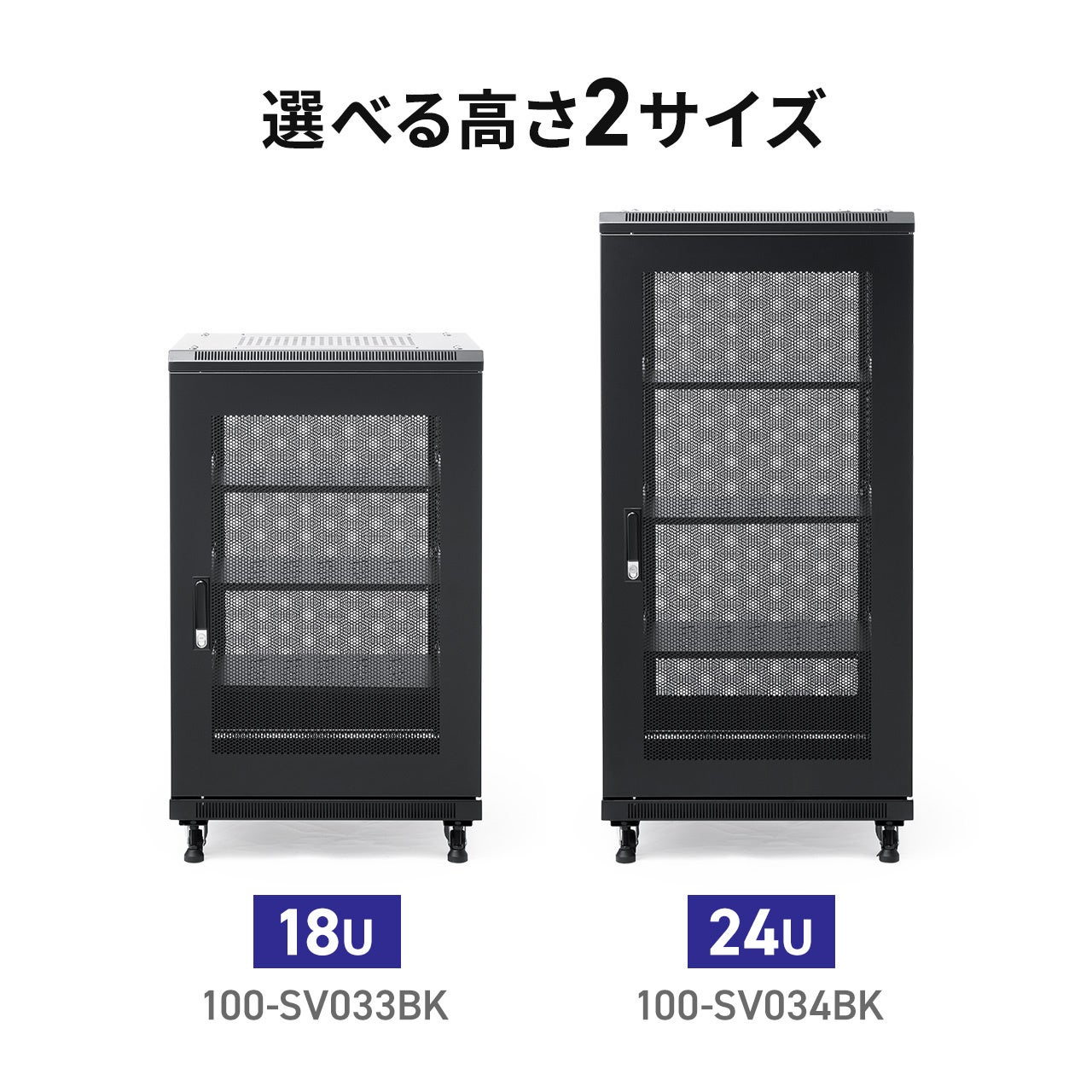 搭載可能マウント数は18U(100SV033BK)/24U(100-SV034BK)です。