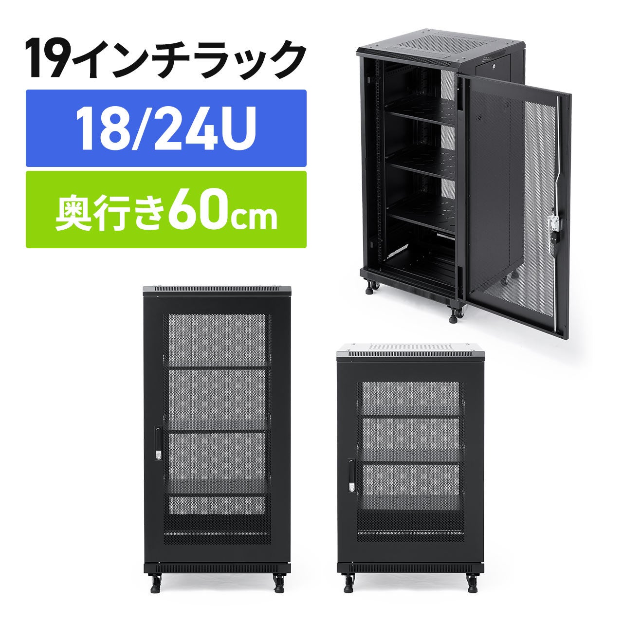 サーバーラック 19インチ 中型 18U 奥行60cm メッシュパネル 棚板×3枚付き サンワサプライ製