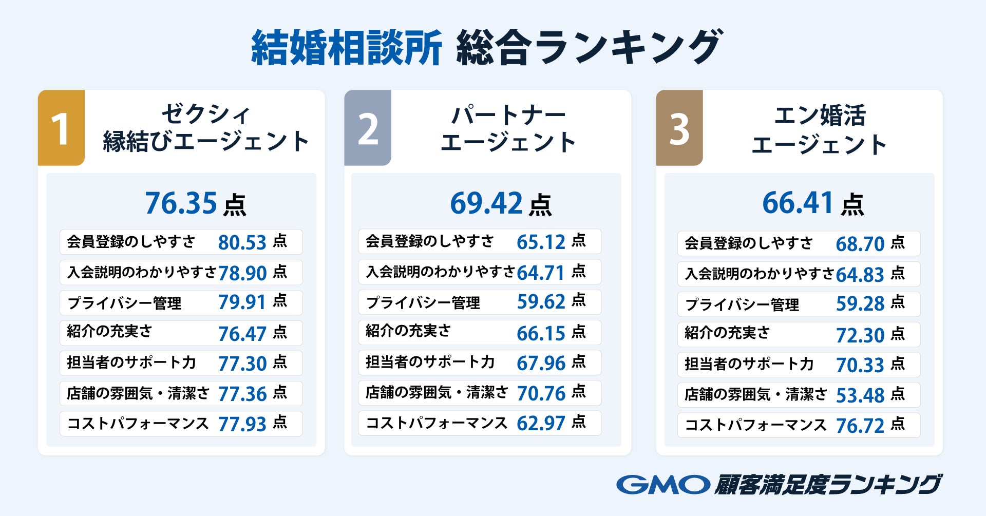 【2025年 GMO顧客満足度ランキング】「結婚相談所」の総合1位はゼクシィ縁結びエージェント【GMOリサーチ&AI】