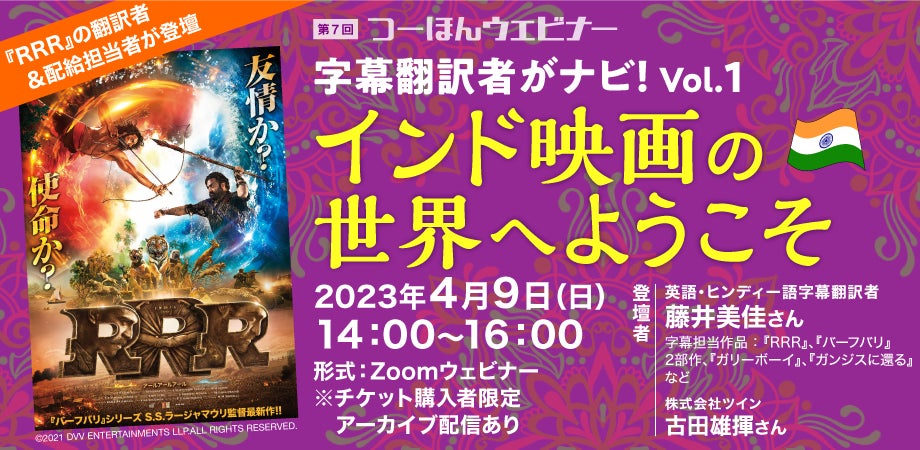 第7回 つーほんウェビナー「字幕翻訳者がナビ! Vol.1 インド映画の世界へようこそ」