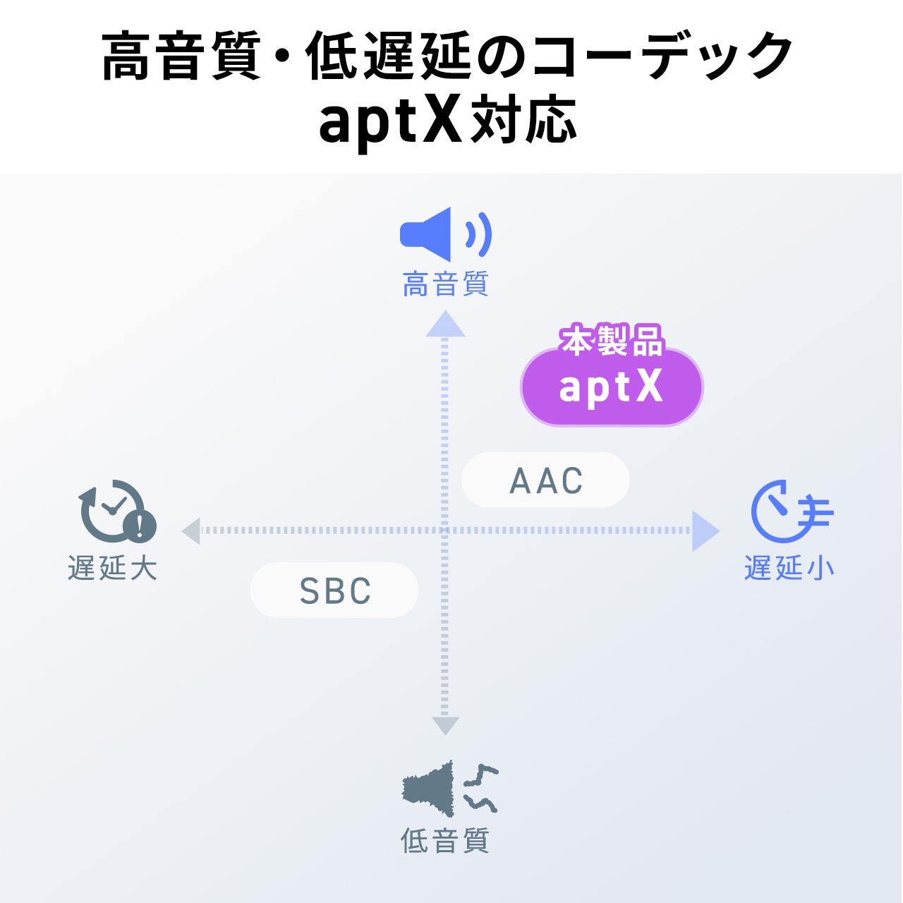 ●高音質・低遅延のコーデックApt-X、より高音質なApt-X HD対応です。