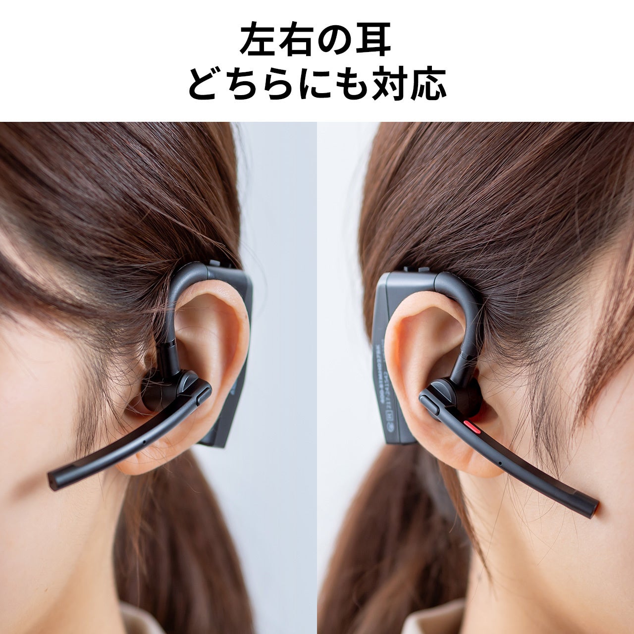 ●マイクの位置を調整でき、左右の耳どちらにも対応します。