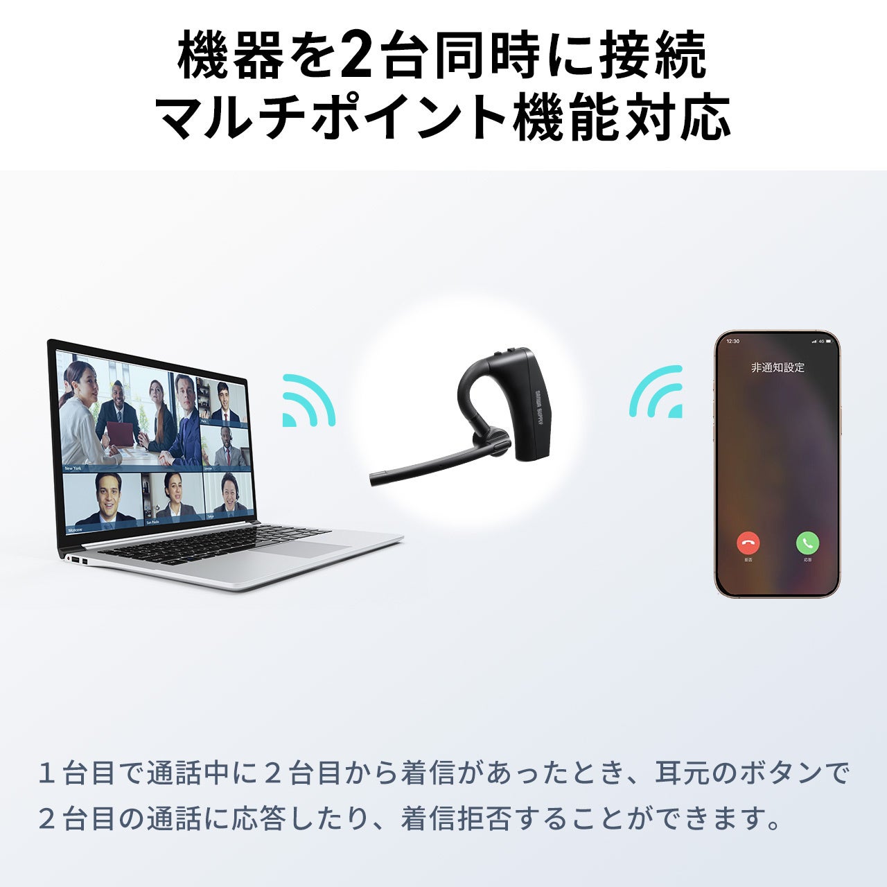 ●機器を2台同時に接続できる、マルチポイント機能に対応します。