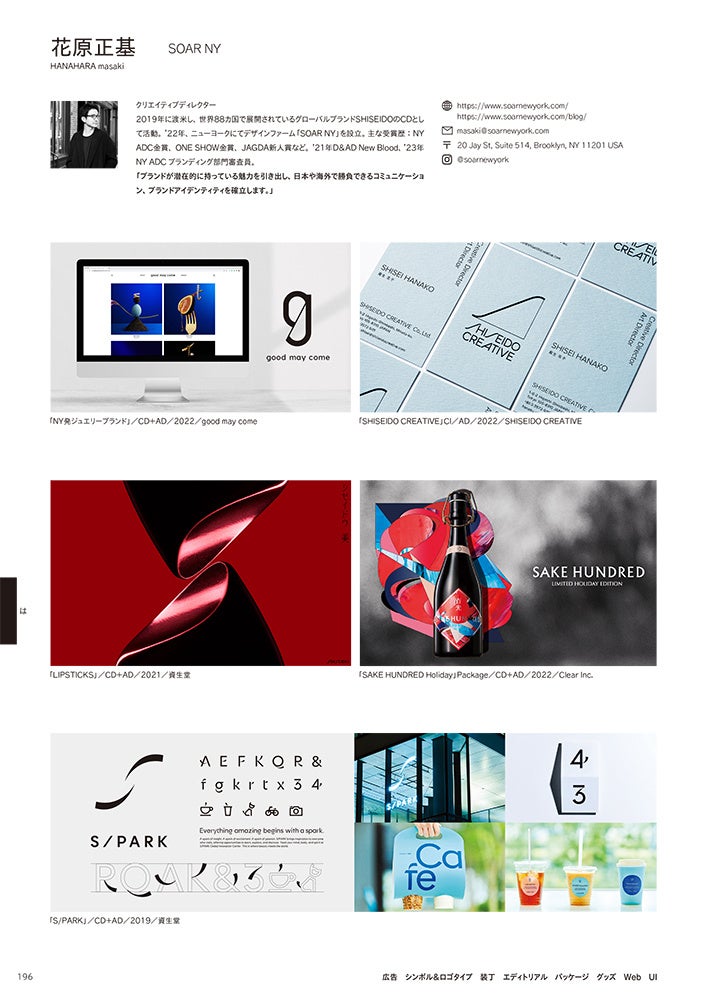 2023年度版では、「広告」「シンボル&ロゴタイプ」「装丁」「エディトリアル」「パッケージ」「グッズ」「Web」「UI」の8つのジャンルで、最前線で活躍するトップクリエイター&次世代を担う若手デザイナーなど、255組を厳選し、最新ポートフォリオとプロフィールを掲載しています。