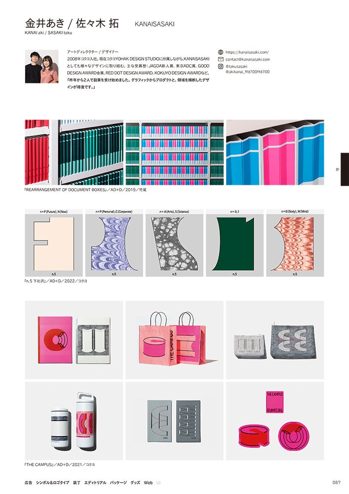 相澤事務所/aete(鈴木 健)/赤沼夏希(博報堂)/芥 陽子/明後日デザイン制作所/アナンケイゴ(Logram inc.)/AVALANCHE/AFFORDANCE/新井大輔(装幀新井)/有馬トモユキ(日本デザインセンター ポリローグ研究室)/アルビレオ/安藤真理/ampersands/池越顕尋(GWG inc.)/池澤 樹(STUDEO)/伊佐奈月(SHA inc.)/石川将也(cog)/石川瑞貴(QANDO)/石川竜太(Frame inc.)/石崎莉子/石田和幸(SUN-AD)/石原絵梨/伊藤敦志(AIRS)/稲垣小雪/井上麻那巳/井上 悠/今井祐介/岩井 巽(KANEIRI)/岩田和憲(岩田デザイン事務所)/岩永和也(GRANDSLAM.inc)/石見俊太郎(NORTH)/IN FOCUS/植田 正/上坊菜々子/氏デザイン/内田喜基(cosmos)/宇野由希子/うろみ/Econosys Design/ゑ藤隆弘(STUDY LLC.)/n+n nplusn inc./江波戸李生(電通)/MdN Design/大石知足/大内かよ(OKデザイン室)/大久保里美 ...ほか多数掲載