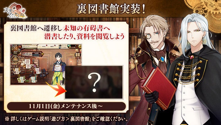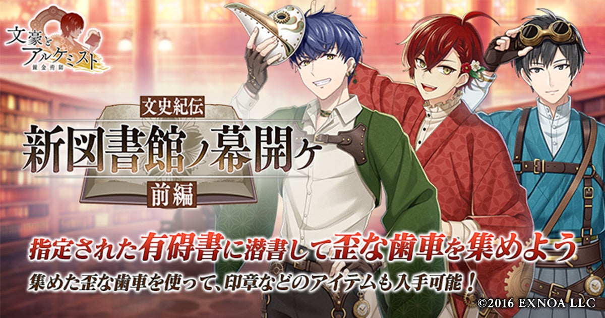 合同会社EXNOA(本社:東京都港区、CEO:村中 悠介、URL:https://games.dmm.com/)が運営するDMM GAMESは、11月1日(金)より、女性向け文豪転生シミュレーションゲーム「文豪とアルケミスト」において、新イベント『文史紀伝「新図書館ノ幕開ケ 前編」』と限定召装『新図書館ノ幕開ケ 前編』を開始いたしました。