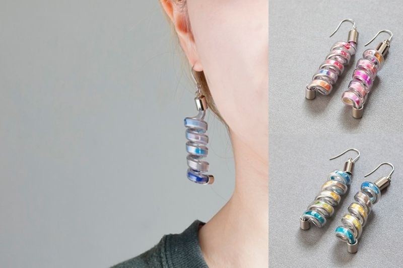 透明チューブに写真を閉じ込めクルクルとさせる事で、色合いなどを360度楽しめるユニークなアクセサリーとなっております。