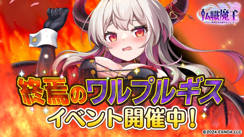 合同会社EXNOA(本社:東京都港区、CEO:村中 悠介、URL:https://games.dmm.com/)は、『転職魔王~リストラ勇者のお仕置きセレナーデ~』(以下、『転職魔王』)にて、期間限定新イベント「終焉のワルプルギス」の開催をお知らせいたします。