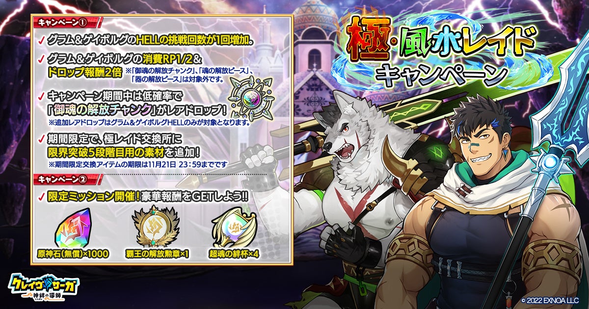 『クレイヴ・サーガ 神絆の導師』極・風水レイドキャンペーン開催!攻略に役立つ期間限定キャラも復刻ガチャに登場!