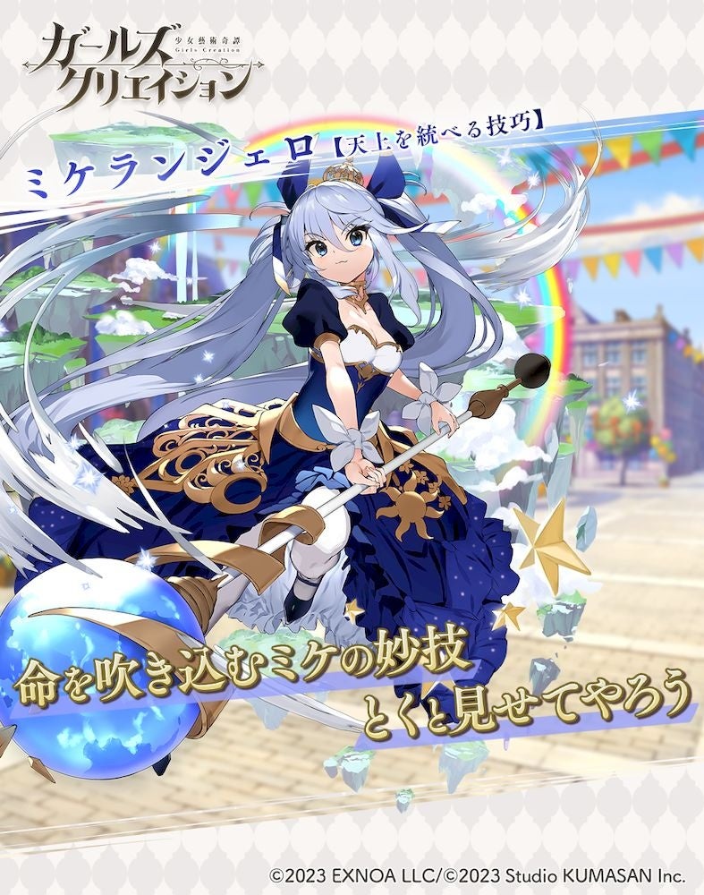 合同会社EXNOA(本社:東京都港区、CEO:村中 悠介、URL:https://games.dmm.com/)が運営するDMM GAMESにおいて、「クリエイティブチーム くまさん」第4弾作品となる『ガールズクリエイション -少女藝術綺譚-』(以下、『ガールズクリエイション』)にて、「1stアニバーサリーキャンペーン」の後半期間とイベント「セキエンの妖怪(?)事件簿 秋の芸術祭編」を開催いたしました。また、セキエン★5スタイル【木精たちの円舞】とミケランジェロ★5スタイル【天上を統べる技巧】が新登場のピックアップガチャの開催もお知らせいたします。