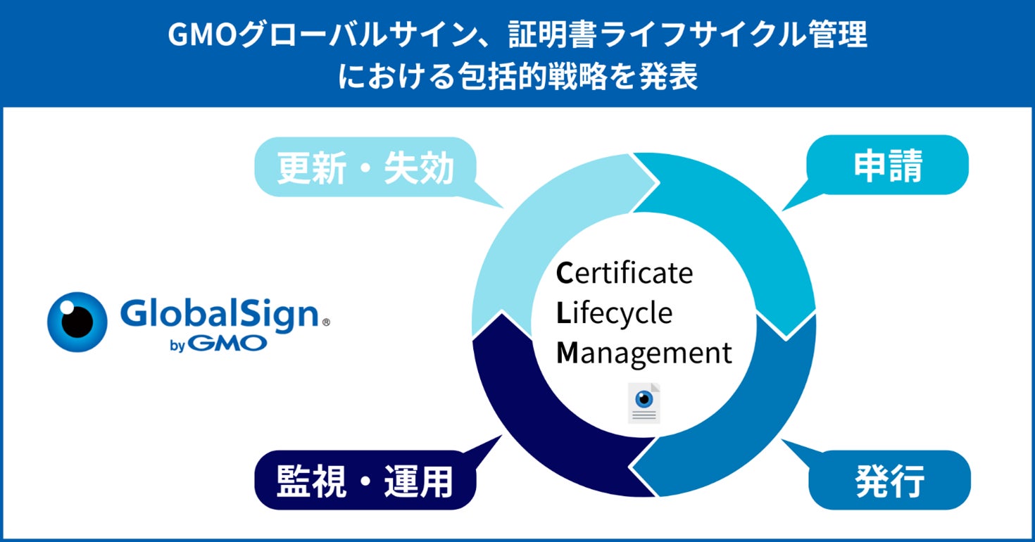 GMOインターネットグループのGMOグローバルサイン・ホールディングス株式会社の連結企業群で、電子認証サービスを展開するGMOグローバルサイン株式会社(代表取締役社長:中條 一郎 以下、GMOグローバルサイン)は、証明書ライフサイクル管理(CLM:Certificate Lifecycle Management)(※1)領域における包括的戦略を発表いたします。