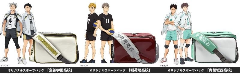 有限会社アクロスより、アニメ「ハイキュー!!」に登場する、梟谷学園高校/青葉城西高校/稲荷崎高校モデルのスポーツバッグを設定に基づいて再現したオリジナルバッグがリリース。
