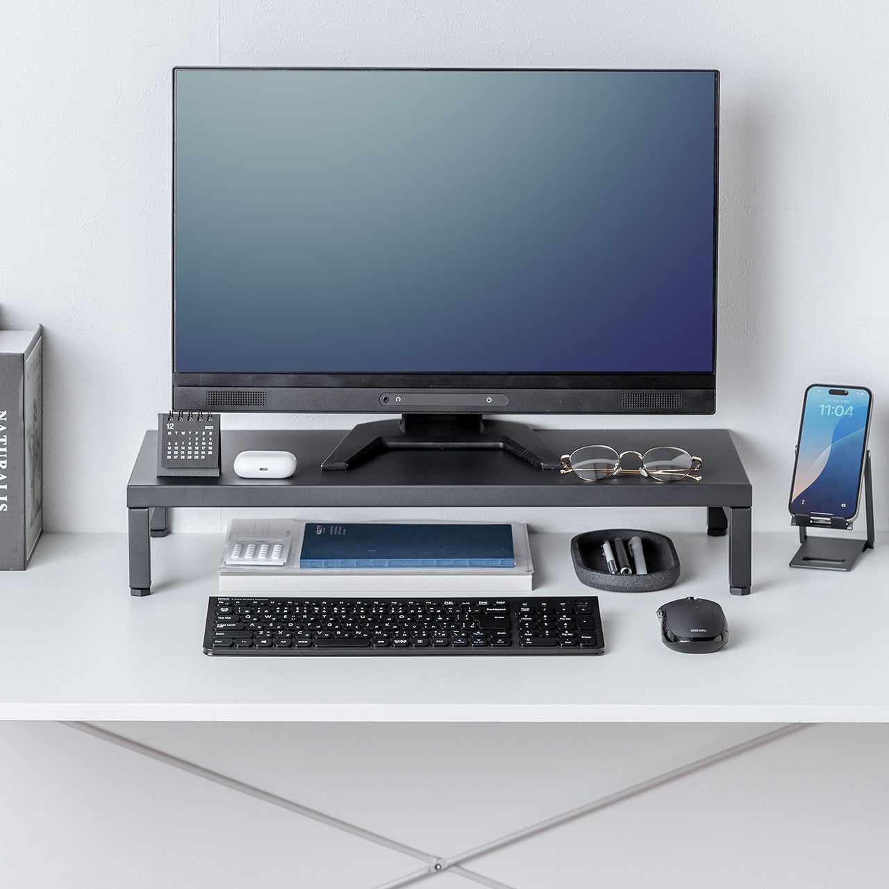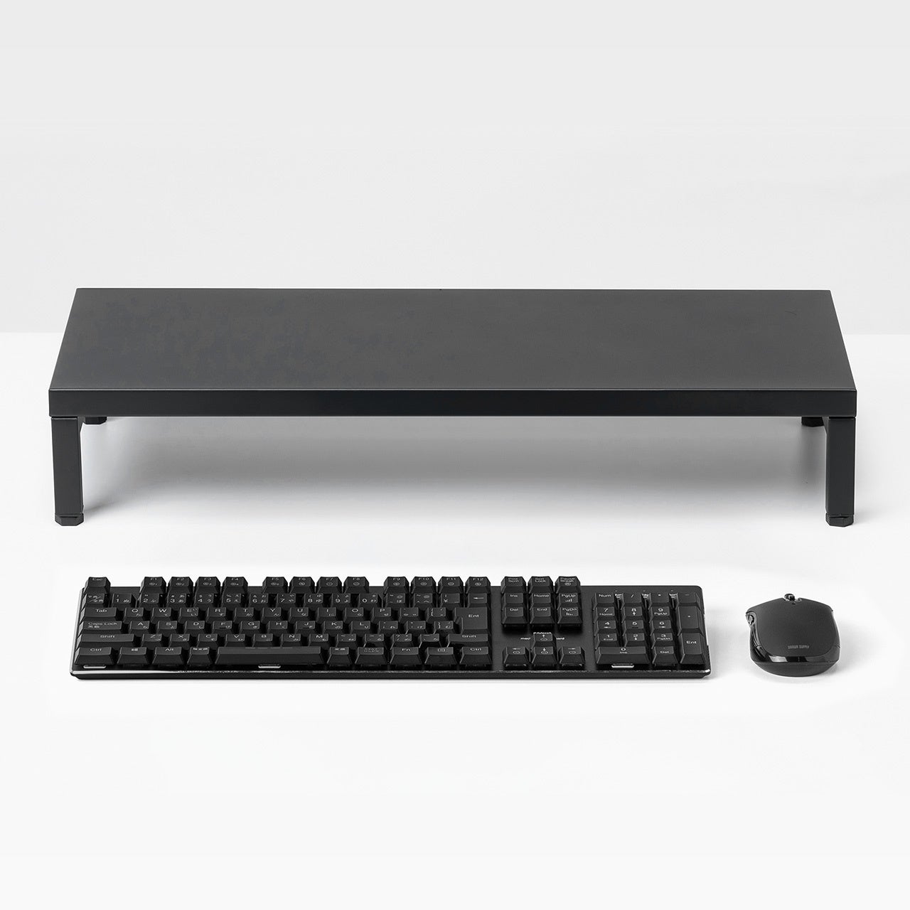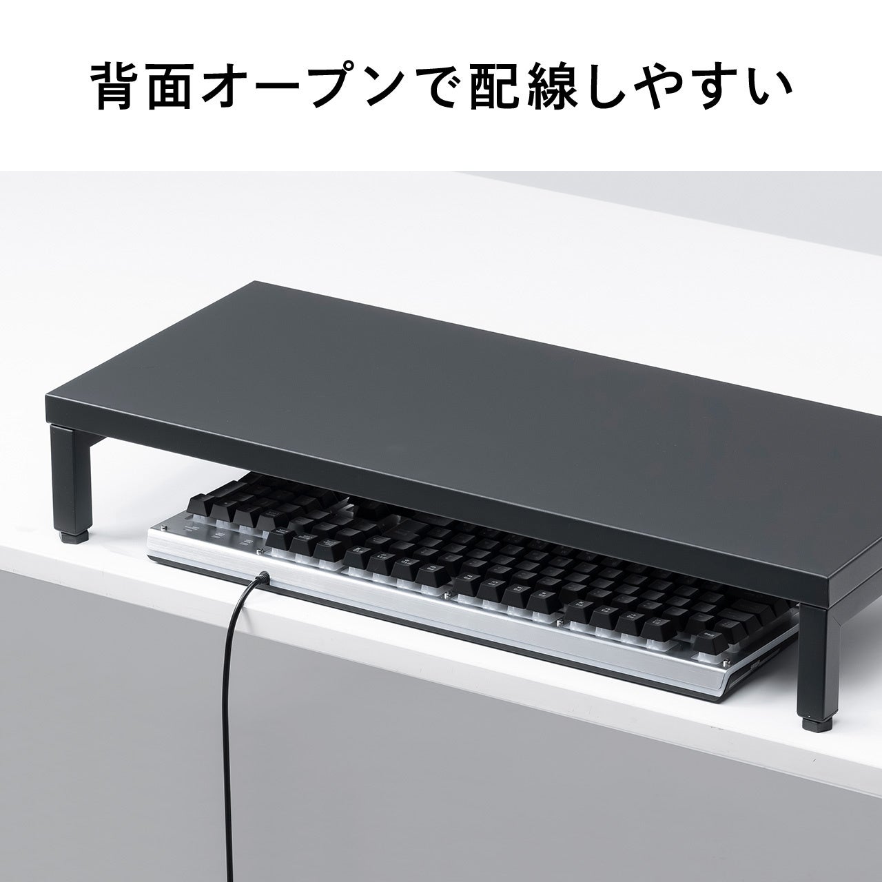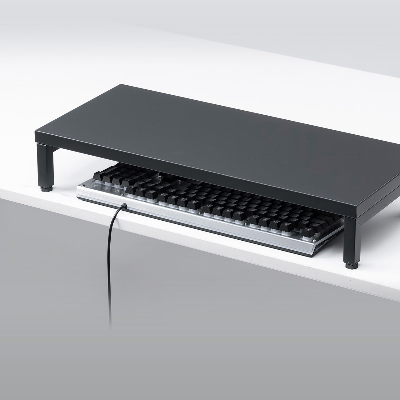 本製品は、キーボードやマウスを収納してデスク上を有効活用できるモニター台です。