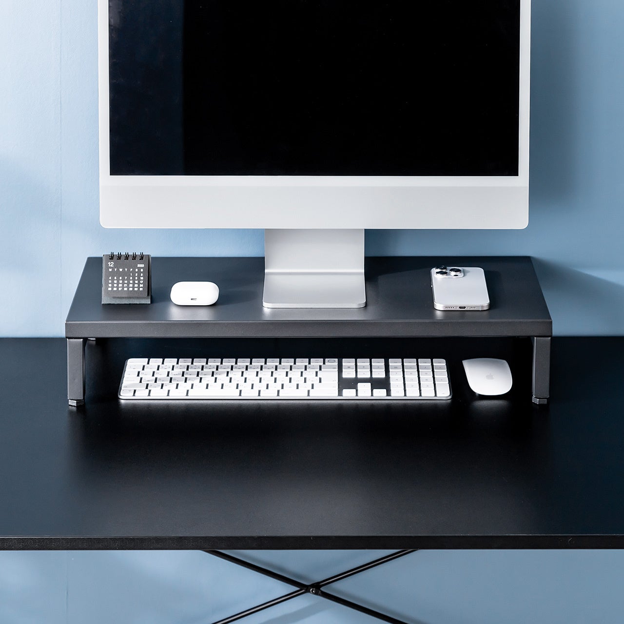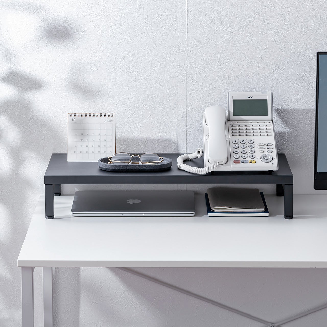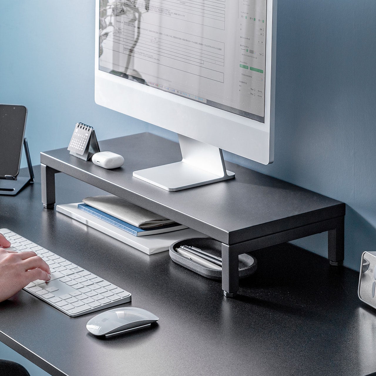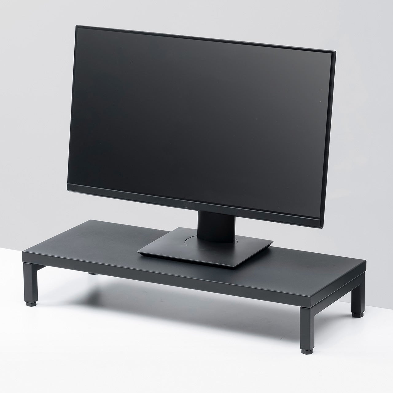 本製品は、キーボードやマウスを収納してデスク上を有効活用できるモニター台です。