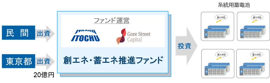 その取組の一環として、東京都は、再生可能エネルギーの導入拡大に資する系統用蓄電池を主な投資先とする「創エネ・蓄エネ推進ファンド」を創設します。