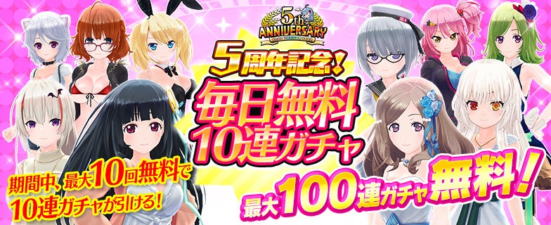 ▼5周年記念!最大100連毎日無料10連ガチャ開催!
