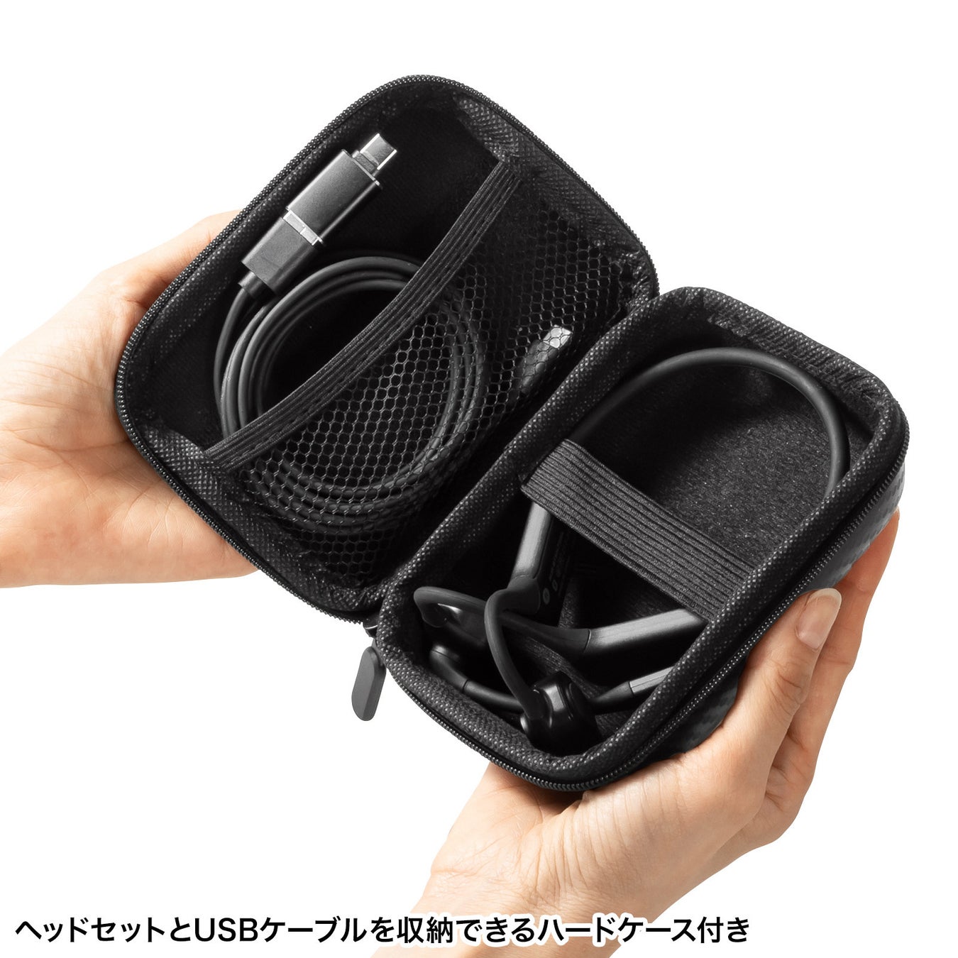 ヘッドセットとUSBケーブルを収納できるハードケース付きで、カバンの中でヘッドセットが破損するのを防ぎます。