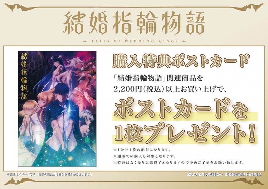 ※AKIHABARAゲーマーズ本店にて開催のTVアニメ「結婚指輪物語」POP UPコーナー購入特典「ポストカード (全1種)」と同一となります。