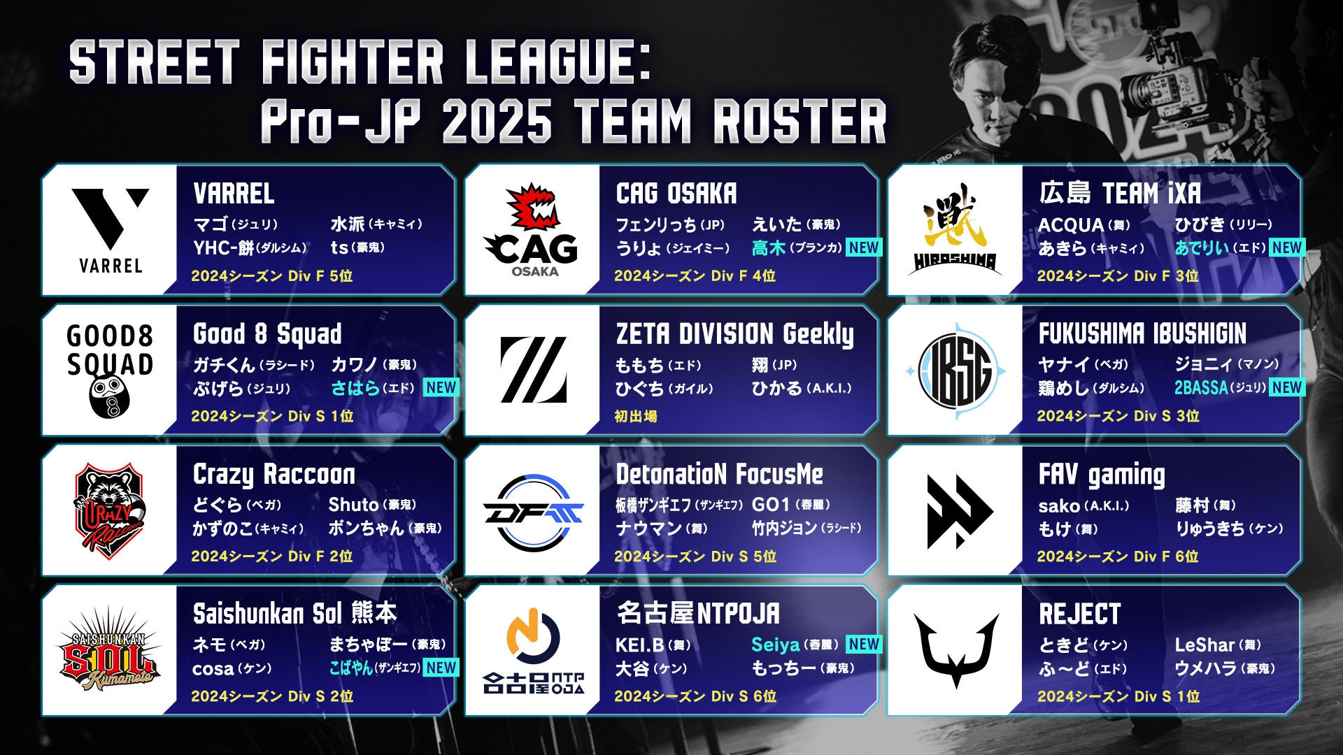 「ストリートファイターリーグ: Pro-JP 2025」出場チーム・選手一覧