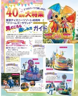 お子様メニューの有無やおむつ替えのできるトイレの場所、かゆいところに手が届く内容はそのままに、今回アップデートされた見どころは東京ディズニーリゾート®40周年の巻頭特集です。