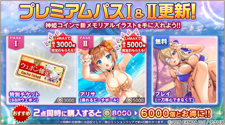 無料で獲得できる特典や、神姫コインで購入できるプレミアムパスⅡの追加特典としてご用意しました!