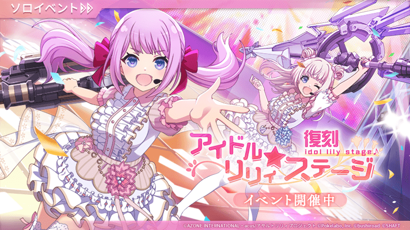 株式会社ブシロード(本社:東京都中野区、代表取締役社長:橋本義賢)と株式会社ポケラボ(本社:東京都港区、代表取締役社長:前田悠太、グリー株式会社100%子会社)は、好評配信中のゲームアプリ「アサルトリリィ Last Bullet」にて、12月20日(月)より「アイドルリリィ★ステージ」を開始しましたことをお知らせ致します。報道関係の皆様におかれましては、ぜひ本情報をお取り扱いいただけますようお願い申し上げます。