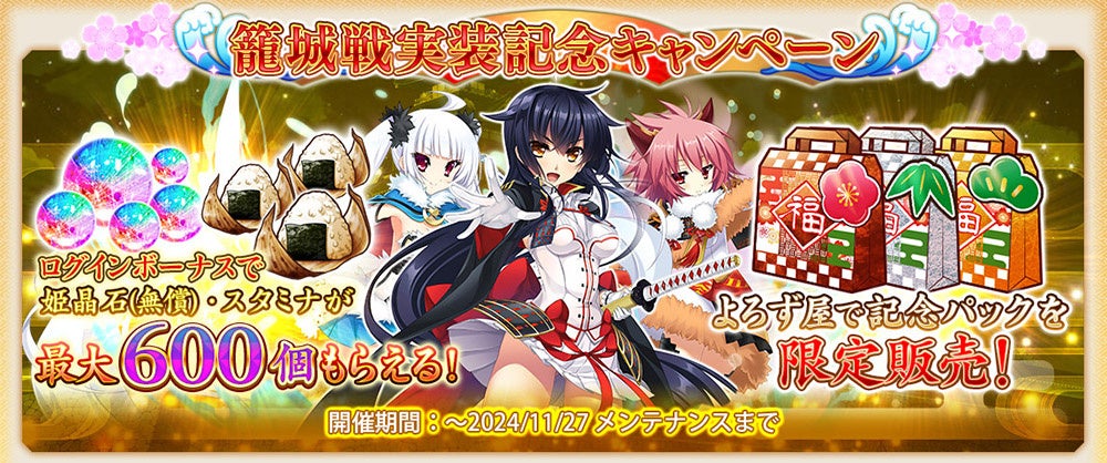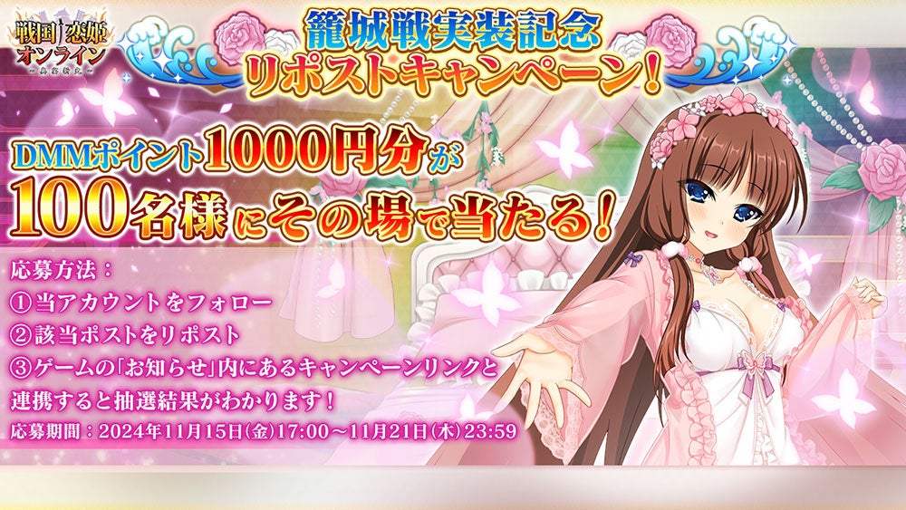 公式X(@senkoi_ol)内にて「籠城戦実装記念リポストキャンペーン」を開催します。