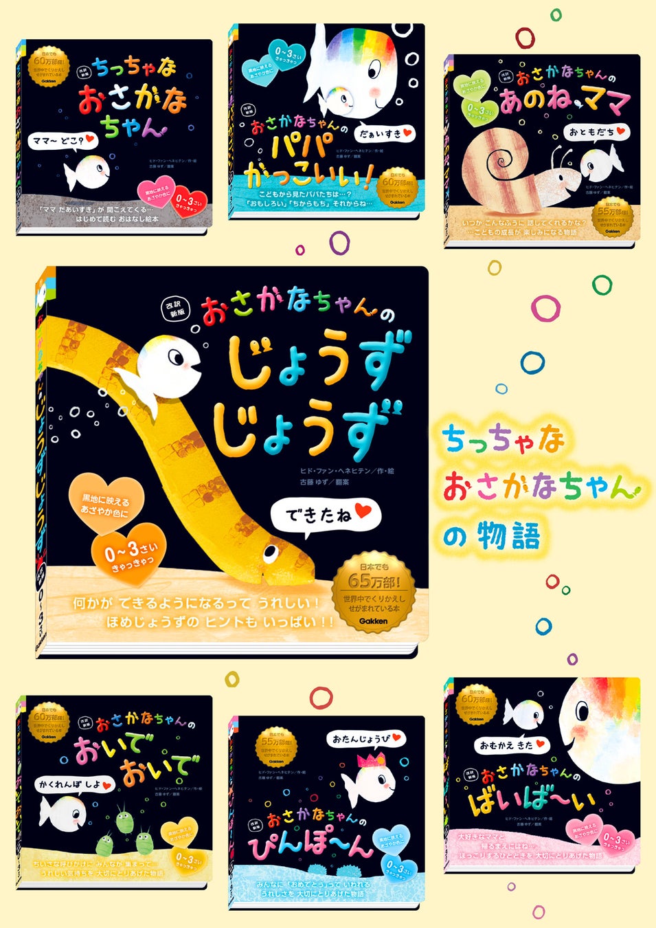 『ちっちゃな おさかなちゃん』は、ベルギーを代表する絵本作家ヒド・ファン・へネヒテンの原作に、オノマトペ(擬音・擬態語)など日本独自のアレンジを加えたシリーズ。