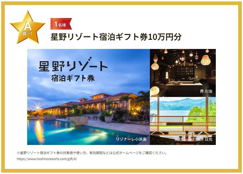 A賞 星野リゾート宿泊ギフト券10万円分(1名様)