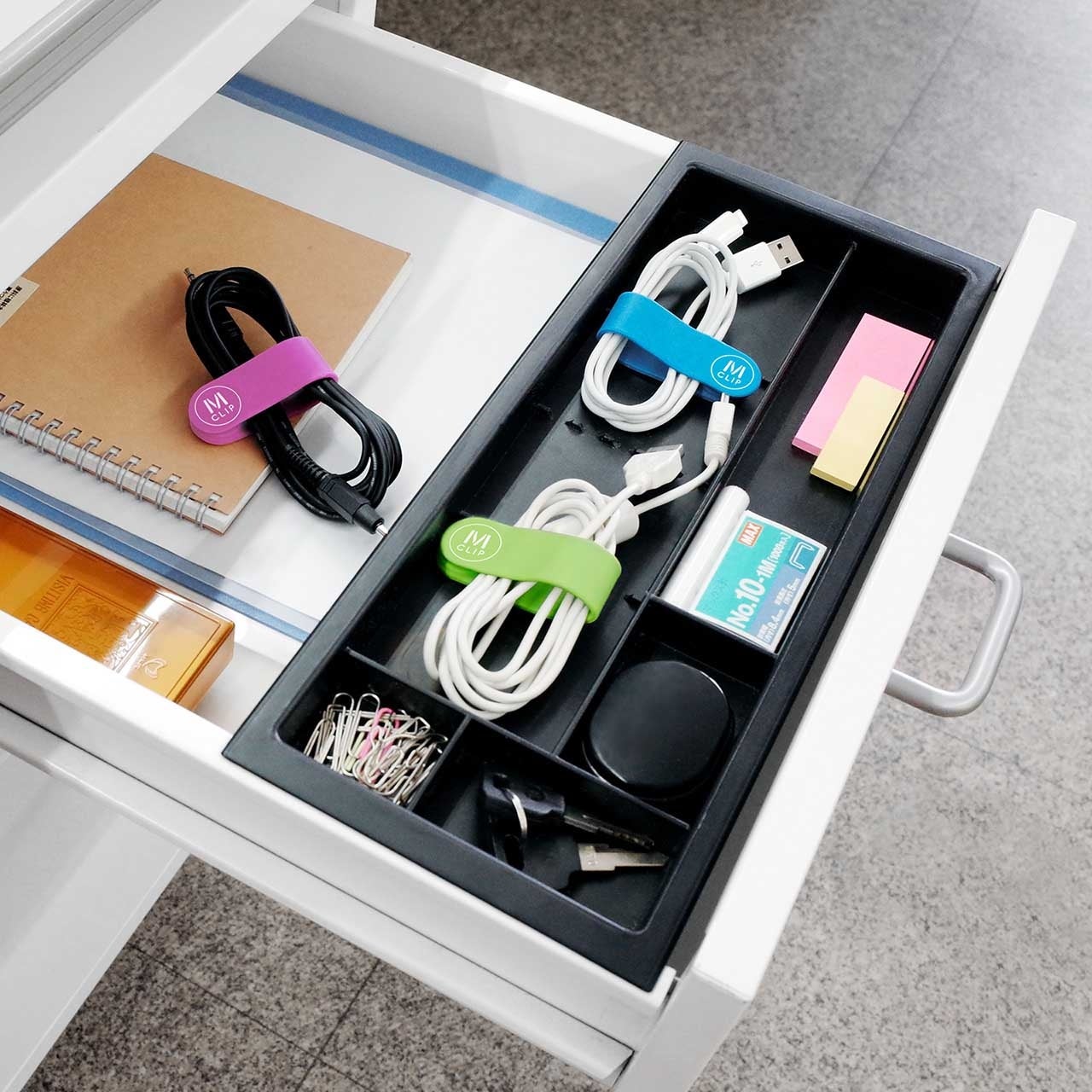 ●デスク周りや机の中、カバンの中でケーブルを整頓できます。