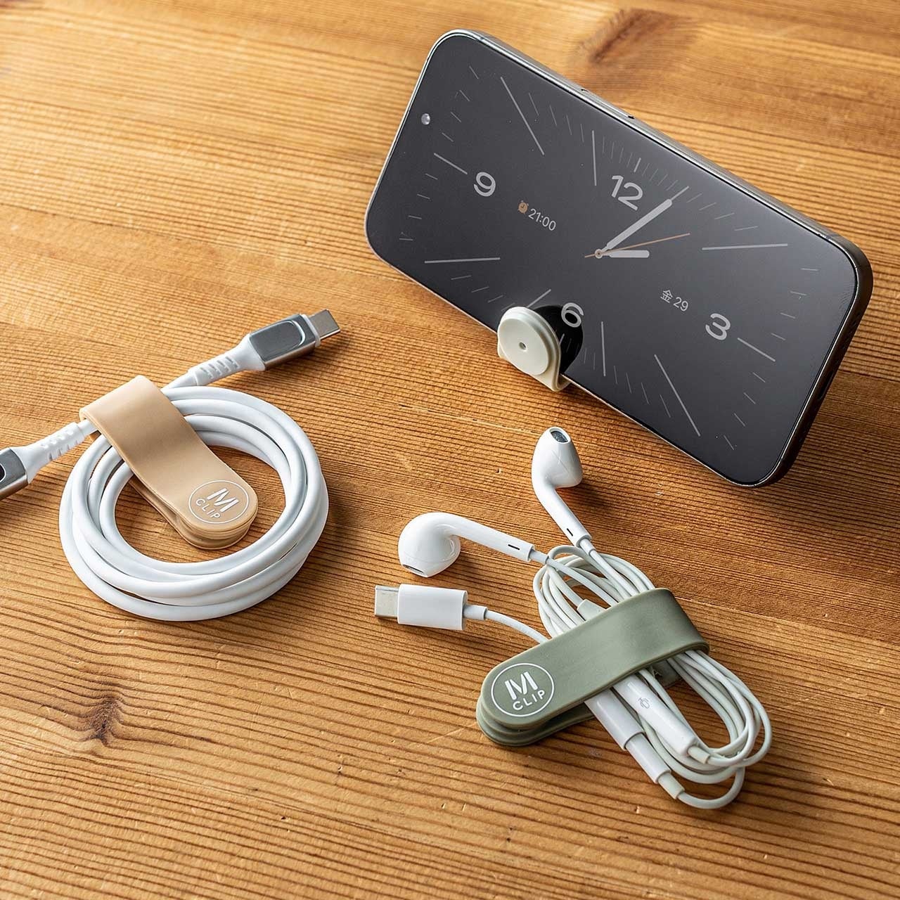 ・フレキシブルで保持力の強い素材なので、簡易スマホスタンドとしても使える
