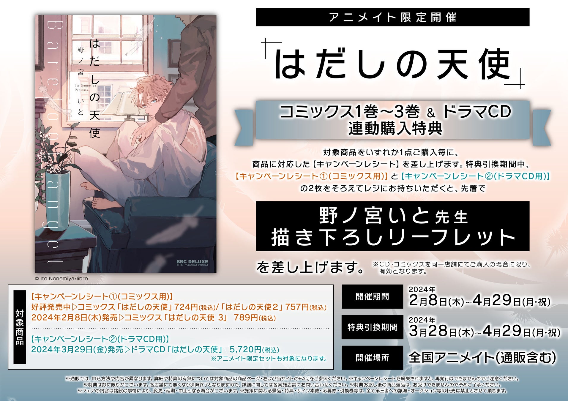 ドラマCD「はだしの天使」より、野ノ宮いと先生描き下ろしの同梱特典アクリルプレート&小冊子、連動購入特典リーフレットの詳細を一挙公開!さらに、ポスタープレゼントキャンペーン実施決定!