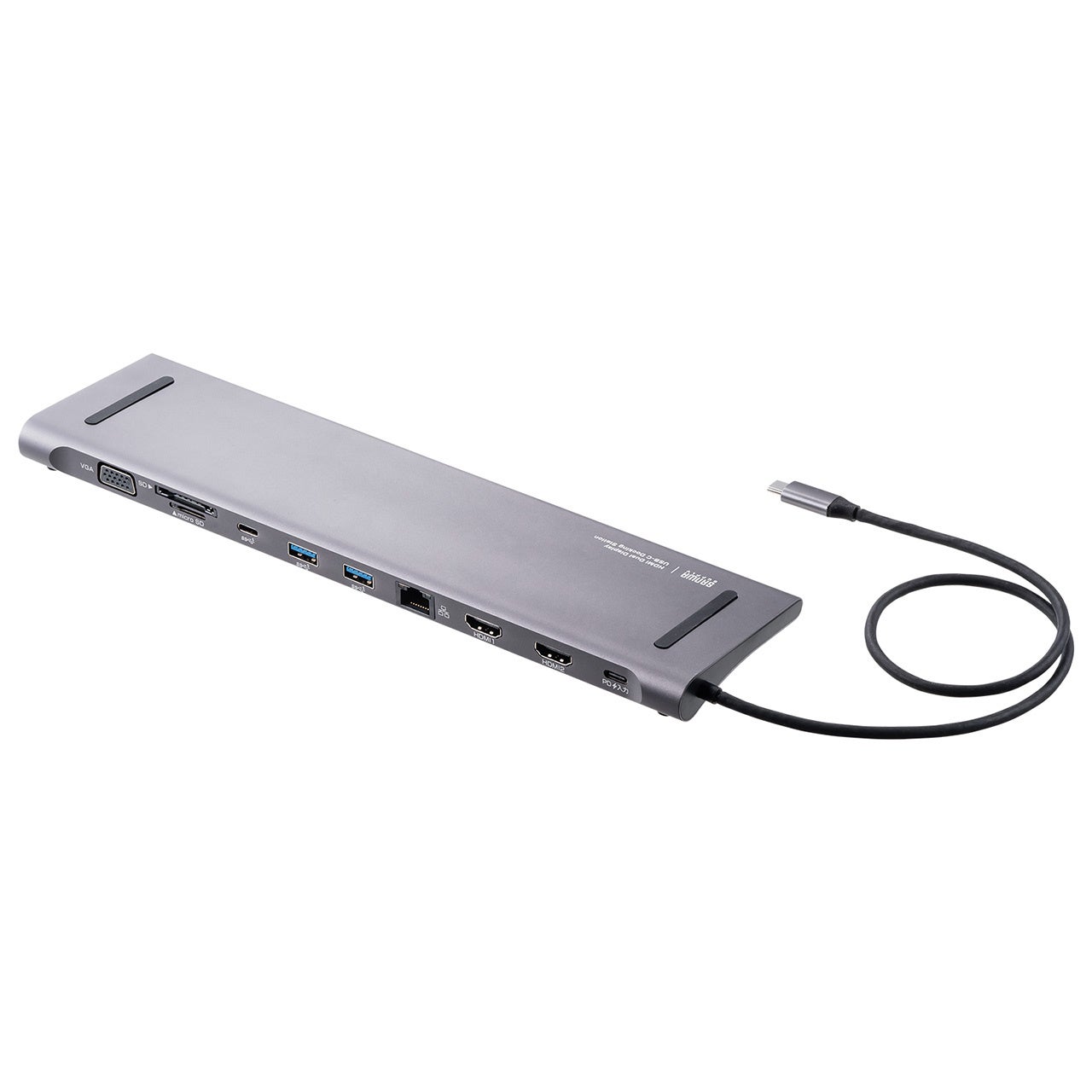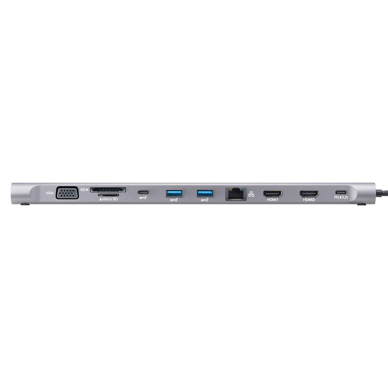 ドッキングステーション USB-C 2画面出力 HDMI×2 + VGA フルHD スタンド型 PD100W 11in1 USBハブ ケーブル一体型 法人