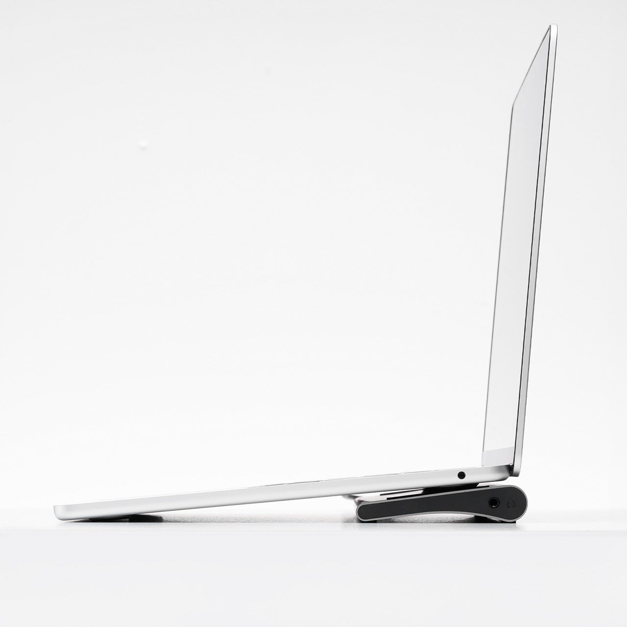 ノートパソコンと一体化するスタンド型です。本製品の上のノートパソコンを置くことで、適度な傾斜でキー入力がしやすく、通気性が上がり排熱をサポートします。
