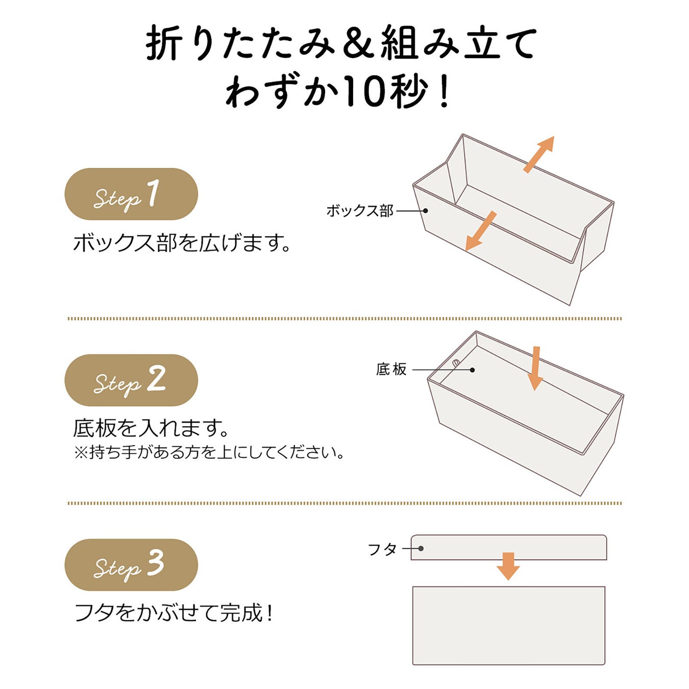 スツール・オットマンとしてちょい座りに、収納ボックスとして身の回りの整理整頓に使える機能性抜群の商品です。組み立てはわずか10秒の3ステップで完了するため、初心者でも簡単に組み立てることができます。面倒な工具や時間をかけずに、すぐに快適な座り心地を楽しめるため、忙しい方にもぴったりです。